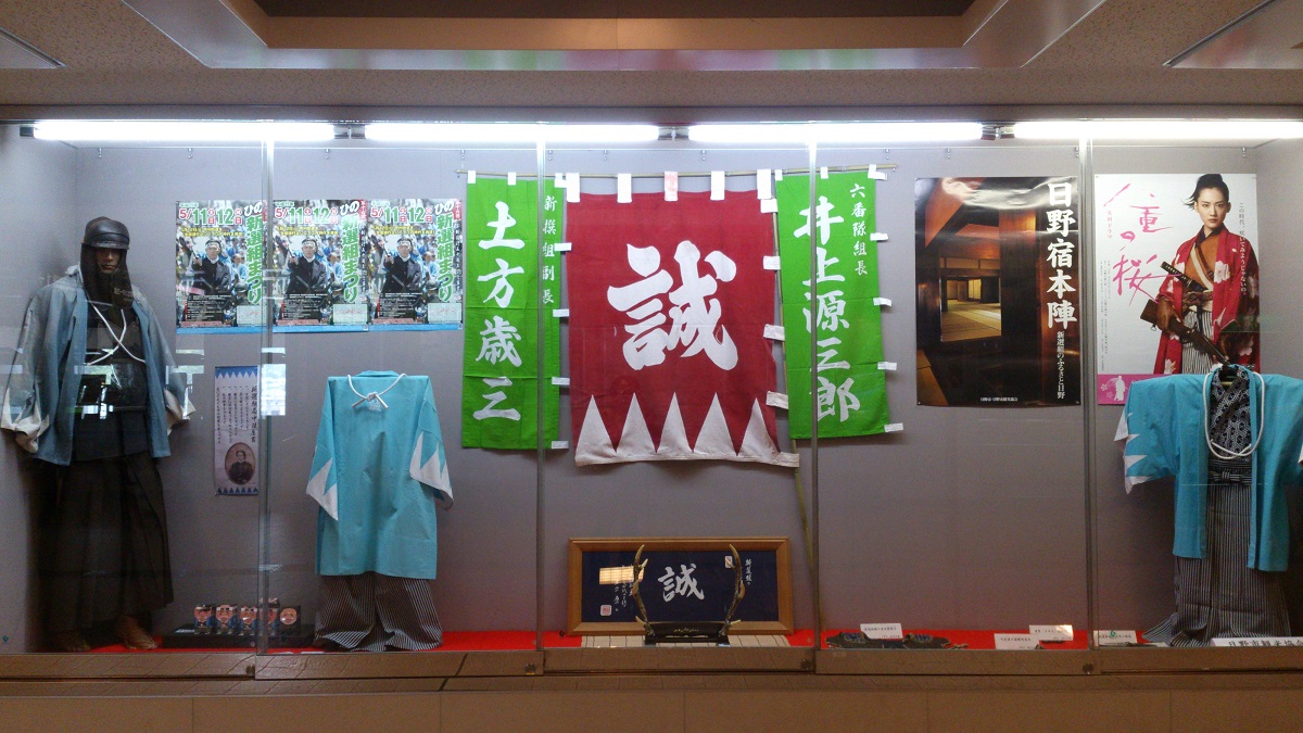 高幡不動の駅にはこんなスペースがありました。土地の人々に愛されているなぁ(*´ω`*)何気に八重さんのポスターまで。←副長と源さんに挟まれて誠旗
