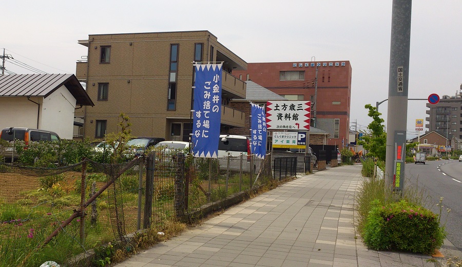 あれがモノレールの窓から見えた看板だ!ああ、そういえば4月上旬の頃、先代館長さんがごみ問題デモに参加しているのをTVで見たわ。大変そうだなとしみじみ見た記憶が……どうにか上手い事片が付くと良いのですが。