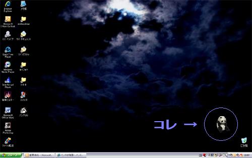 『パンダ幼稚園』と云うところで、デスクトップパンダQQを貰ってきました。もっと前からDLはできたと思うんだが、あの…やっぱり登録?それがめんどu(略)今更DLした理由は、『となりのこぱんだ』のQQちゃんが卒園だって云うから、何だか寂しくなっちゃって。次のパンダ親善大使も楽しみにはしている。そして、我がPCにQQ嬢をお迎え♪(下画像参照/携帯だと見られないかも)
