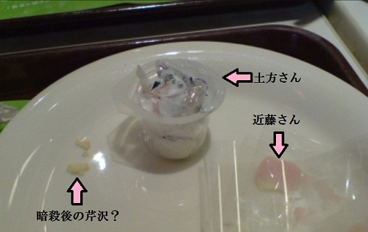 暗殺後の芹沢は何となくです。何となく、タルトの残骸のようなイメージ。意味不明ですね。すみません。「土方…お前が俺を斬るのか…?」(←身体の関係があるのでそんな事されないかなと思ったり思わなかったり)と言うと、副長が「鬼になれって言ったのはてめぇだろ?」と、ニヤリと笑って止めを刺すんだよ。そしてタルトの残骸化する芹沢。因みに、私は何時でも大真面目です。
